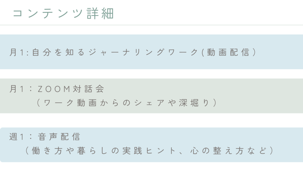 心と時間に余白ある生き方。親子で1か月北欧フィンランドで暮らしてみて感じたこと。 肩書きや年齢を気にしない価値観を持った北欧の人たちは人の目を気にしすぎず自分のペースで自分らしくいきいきと働いていた。 幸福度にも大きく関わる働き方。それは社会制度が整った環境がないと難しいのかな?きっと、答えはNO。それだけじゃない。 わたしたち自身がどんな考えを持っているだろう。 休むことや何にもしないことへの罪悪感。まわりの目や評価や社会の常識。母親はこうであるべきという価値観。 1つずつゆっくりと手放して自分らしい働き方と暮らしを一緒に再デザインしませんか? お母さんという枠を飛び越えて大切な人を大切にしながら人生を大切に自分らしく生きることを今、はじめよう。 ■参加料金 月額:2,500円 ↓ スタートアップメンバ限定月額:1,980円 (ずっと変わらず) ■注意事項 ・初回お支払いは11/1スタートです。お申込みいただいた後にお支払い方法のご連絡をさせていただきます。・お支払い方法はクレジットカード払いになります。・サブスクリプションのシステムを利用しておりますので、会費は事前確認なく、自動更新となります。決済後はいかなる理由でもキャンセル・返金はしておりませんのでご注意ください。・退会はいつでも可能です。退会の連絡は25日までにご連絡いただければ翌月分よりお支払いがストップできます。ご希望の方は、担当講師までご連絡ください。・コミュニティー内のコンテンツ内容や個人の体験やお話しはコミュニティー外へ漏らさないようお願いいたします。・MLMや宗教などの勧誘目的でのご参加はご遠慮ください。 ■お申込み お申込み開始は10/14㈫10時~ ■コミュニティー説明会のご案内 もう少しコミュニティーについて詳しく聞いてみたい!そんな方へ少人数制のおはなし会を開催します! 「どんなコミュニティーなの?」「北欧をエッセンスにどういうこと?」「どんなことが体験できるの?」 ちょっとでも気になる方はこちらへご参加ください。 ≪日時≫ お時間は45分ほどです。お時間に余裕を持ってご参加ください。 定員:各5名 ①10/10(金)10時〜 ②10/16(木)10時〜 ③10/16(金)21時〜 ④10/17(金)10時〜 ⑤10/17(金)21時〜 説明会に参加する ライフコーチ/カウンセラー 下村 あゆみ Shimomura Ayumi 1989年生まれ /浜松市在住/2児の母好きなこと / 旅行・自然・カフェラテ わたし自身が会社員として仕事復帰後に仕事と子育ての両立の壁にぶつかり自分の人生はこのままでいいのだろうか。と自分の生き方や働き方と向き合うということをはじめました。 「お母さんだから・・・」思っていたほどに自分の中にもその価値観があることに気づきました。 フリーランスになっても仕事と子育ての両立には悩みながらもやりがいのある仕事に出会えることができすこしずつオンラインを軸とした働き方が形になってきました。 そして今年の夏、親子でフィンランドに1か月滞在するという選択肢を持つことができ実現することできました。”暮らすように旅したい!”これは私がわたしらしくいれるライフスタイルです。 そしてあなたにはあなたにあうあなたらしい働き方や暮らしがあります。 今回このコミュニティーReDesignは今までのわたしの経験や自分との向き合い方、学びをぎゅっと詰め込んだ場所です。 幸福度が高いシンプルな北欧ライフを取り入れながら一緒にまたあたらしい一歩を踏み出していけたらうれしいです。 2022年に会社員(営業事務)からフリーランスへと転身。2023年夏よりコーチ/カウンセラーとして活動スタート。女性の心にフォーカスしてコーチングを軸に生き方や働き方のサポートをしている。